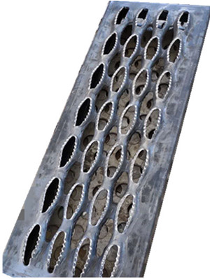 鱷魚嘴沖孔網是采用金屬板材在數控沖床上面經過沖壓制作的一種具有很強的防滑能力的網狀產品,可以制作成大部分的幾何形狀,具有很強的適應性。